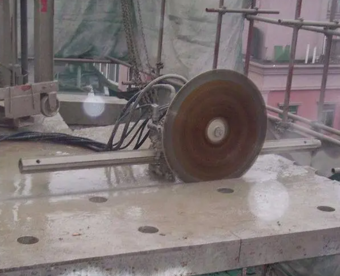 繩鋸切開(kāi)。發(fā)動(dòng)開(kāi)端按鈕,調(diào)整自動(dòng)輪提高張力,確保金剛石繩子恰當(dāng)繃緊,供給冷卻水,再發(fā)動(dòng)驅(qū)動(dòng)自動(dòng)輪,帶動(dòng)金剛石繩子反轉(zhuǎn)切開(kāi)。吊裝及破碎。切開(kāi)完結(jié)后,全體將混凝土構(gòu)件吊裝到指定的場(chǎng)所破碎,并及時(shí)清運(yùn)出施工現(xiàn)場(chǎng)。